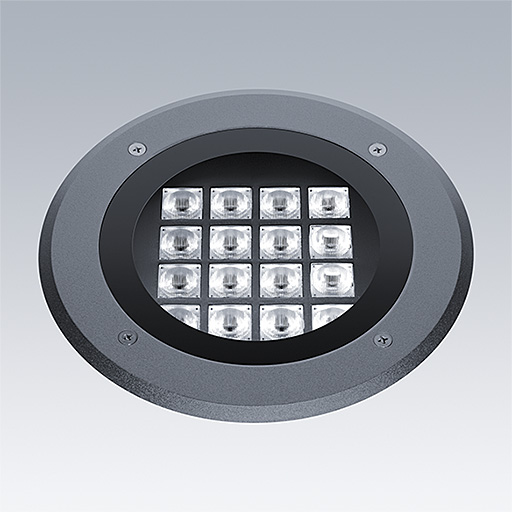 Cesar Opera, walk over montage encastré dans le sol, luminaire à LED pour l'éclairage décoratif des façades, avec et distribution asymétrique.. gradable DALI-2 Driver. Classe électrique I, IP67, Résistance aux impacts : IK09. Boîtier : Moulage sous pression aluminium, thermopoudré anthracite. Température de service de Température ambiante : -20°C à +45°C. Livré avec LED 3 000 K.