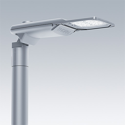 Lanterne d’éclairage routier LED moderne (Small) avec 12 LED alimentées en 1050 mA avec une optique Route étroite. Programmable Driver. Classe électrique II, IP66, IK09. Corps : aluminium (EN AC-44300) Moulage sous pression, thermopoudré gris clair 150 sablé texturé. Emmanchement : aluminium (EN AC-44300), Moulage sous pression sans peinture. Fermeture : verre ép. 5 mm. Visserie : Acier à ressorts. Livré avec un adaptateur d’emmanchement Ø 60 mm qui convient pour montage top (inclinaison 0°/5°/10°/15°/20°) ou latéral (inclinaison -15°/-10°/-5°/0°/5°/10°/15°). Equipé d'un 50% circuit de réduction de puissance, qui entre en vigueur 3 heures avant et 5 heures après un minuit calculé. Livré avec LED 4 000 K. Protection contre les surtensions : 10 kV en mode commun single pulse et 8 kV en mode commun multipulse; 6 kV en mode différentiel multipulse. Si un système DALI est connecté: 6 kV en mode mode commun et mode différentiel multipulse.