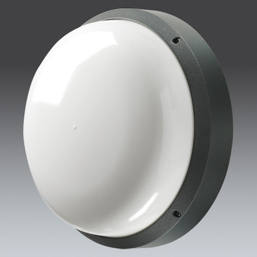 Hublot LED ronds et résistants aux impacts. Electronique, non gradable. Classe électrique I, IP65, IK10. Corps : taille Large, aluminium Moulage sous pression (LM6), anthracite thermopoudré. Diffuseur : Polycarbonate (PC) opale avec collerette aluminium Moulage sous pression. Connexion électrique par bornier 3 P 2 x 2,5 mm². Livré avec LED 3 000 K