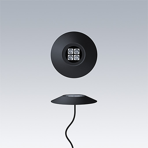 Cesar Bow plafonnier, luminaire à LED pour l'éclairage décoratif des façades, avec et distribution faisceau large. Classe électrique III. Convertisseur à distance DALI2. IP67, Résistance aux impacts : IK07. Boîtier : aluminium Moulage sous pression, thermopoudré texturé noir. Température de service de Température ambiante : -20°C à +40°C. Livré avec LED 2 700 K.