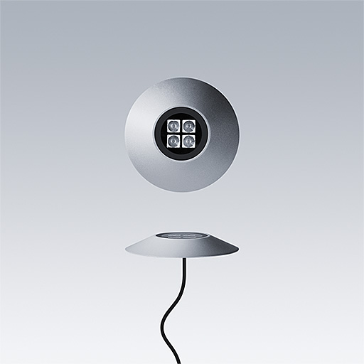 Cesar Bow plafonnier, luminaire à LED pour l'éclairage décoratif des façades, avec et distribution faisceau large. Classe électrique III. Convertisseur à distance DALI2. IP67, Résistance aux impacts : IK07. Boîtier : aluminium Moulage sous pression, thermopoudré texturé gris. Température de service de Température ambiante : -20°C à +40°C. Livré avec LED 4 000 K.