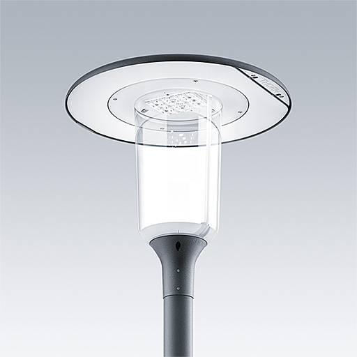 Lanterne LED discrète, à montage top, avec une conception intemporelle. Driver pour 12 LED, entraînés à 350mA avec une distribution Confort pour rue large (asymétrique). Classe électrique II, IP66, IK10. Capot et socle : aluminium Moulage sous pression thermopoudré résistant à la corrosion et adapté aux environnements C5, finition texturé gris anthracite 900 sablé. Boîtier : Polycarbonate (PC) faible épaisseur anti-UV avec finition transparent. Livré avec LED 4 000 K. Montage top sur mât de Ø 60mm. Pré-câblé avec 5 m de câble.