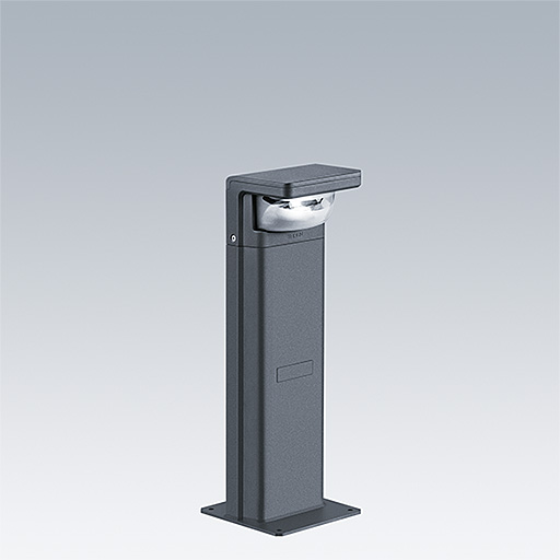 Borne LED sur semelle de 700 mm de haut, incorporant la technologie Flat beam® de Thorn. 1 LED alimentée en 350mA. Driver inclus. Classe électrique II, IP66, IK10. Corps : Moulage sous pression aluminium (EN44300, compatible avec l'installation en bord de mer), thermopoudré, texturé gris anthracite 900 sablé. Vasque : traitement anti-UV Polycarbonate (PC), semi-dépoli. Fixations : Acier inox. Configuré comme détecteur de mouvement maître avec capteur intégral dissimulé et commande par courant porteur. Fonction couloir ré-réglée 20 – 100 % pendant 5 minutes. Rayon de détection 5 m. Livré avec LED 3 000 K.