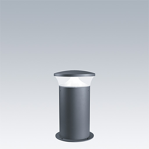 Borne de faible épaisseur, élégante et anti-vandalisme Radialement symétrique avec optique de haute performance. Pour Electronique, non gradable. Classe électrique IP66 l. Mât et socle : aluminium (EW AW 6060). Chapeau : aluminium Moulage sous pression (EN AC 44300). Diffuseur : Polycarbonate (PC) transparent anti-UV. Boîtier appareillage : Polycarbonate (PC). Couleur du chapeau et mât : gris anthracite 900 sablé thermopoudré (similaire à RAL7043). Luminaire pré-câblé et prêt à installer. Boîtier de connexion nécessaire, à commander séparément. Livré avec LED 3 000 K