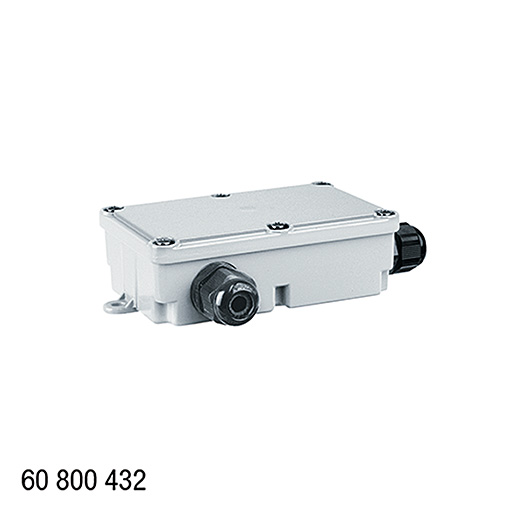 Boîtier universel MINI ; degré de protection IP67 ; permet le raccordement de max. 3 câbles d'alimentation appropriés (H07RNF, etc.) ; sert au câblage traversant de câbles d'alimentation secteur à l'extérieur du corps du luminaire ; entrée de câbles par 3 passe-câbles PG SW25 pour câbles de Ø 4,3-11,9 mm ; bornier à 4 pôles pour câbles de max. 2,5 mm² ; Dimensions : 174 x 111 x 43 mm