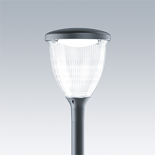 Lanterne intelligente LED, montage en top, avec une distribution Confort pour rue large. Programmable Driver alimentant 12 LED en 700mA. Classe électrique II, IP66, IK10. Chapeau et embase : aluminium résistant à la corrosion, Moulage sous pression thermopoudré, avec une finition gris anthracite 900 sablé texturé. Vasque : Polycarbonate (PC) traité anti-UV. Livré avec LED 4 000 K. Indice min. de rendu des couleurs: 70. Pré-câblé avec 5 m de câble. Montage top sur mât de Ø 60mm.
