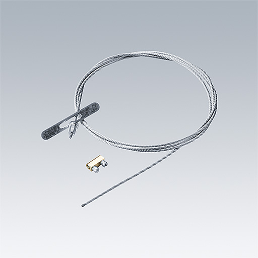 Câble d’acier Ø 1 mm et mécanisme de fixation réglable permettant une suspension de sécurité pour fixer les luminaires encastrés dans un faux plafond