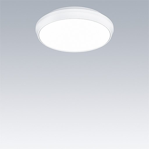 Luminaire circulaire décoratif avec corps Small. Composant indirect bas pour éclairage du mur et du plafond. Electronique, non gradable. Garniture esthétique du luminaire en Polycarbonate (PC) blanc. Diffuseur : opale Polycarbonate (PC). Classe électrique II, IP54. Livré avec LED 4 000 K.