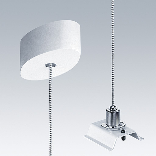 Suspension par câble de 1000 mm en Argenté avec cache-piton rond en câble d'acier galvanisé réglable en hauteur en continu. Câble de suspension et élément de fixation au plafond. Cache-piton elliptique en matière plastique avec possibilité de raccordement de 6 pôles + terre. Clips de fixation en acier à ressorts inoxydable. Les câbles d’alimentation ne sont pas fournis et doivent être commandés séparément. Hauteur : 1000 mm ; poids : 0,1 kg