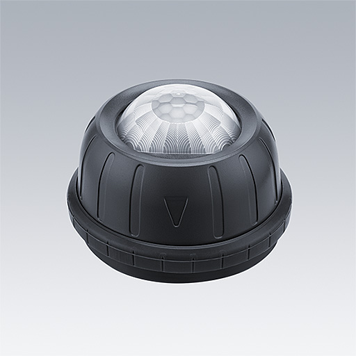 Connecteur Zhaga book 18 Ed.3 pour détecteur mouvement infrarouge passif, IP66. Installé jusqu'à 8 m, couvre une large zone asymétrique (jusqu'à 560 m²) pour la détection des piétons et des vélos. Détection des voitures uniquement sur les parkings et à une vitesse réduite.
