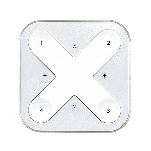 Commutateur mural sans fil, fonctionnement à pile, pour le montage apparent ; amovible par aimant ; avec support mural ; commande de tous types d'appareils basicDIM sans fil ; possibilité d'enregistrer 4 scénarios lumineux ; gradation vers le haut/vers le bas ; commande de la température de couleur ; degré de protection IP20 ; couleur : blanc; poids : 0,08 kg; Dimensions : 90 x 90 x 12 mm