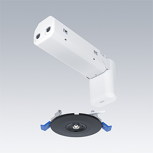 Luminaire de sécurité à LED pour montage encastré au plafond dans des découpes de plafond de 65 à 68 mm.