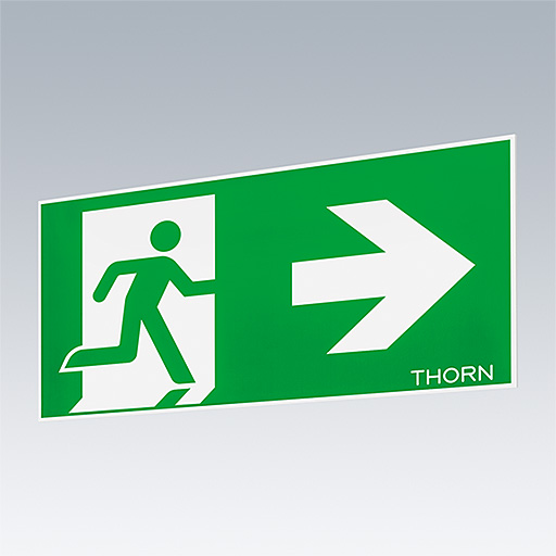 Self adhesive emergency exit legend for Voyager Sigma luminaires with a viewing distance of 30 m.