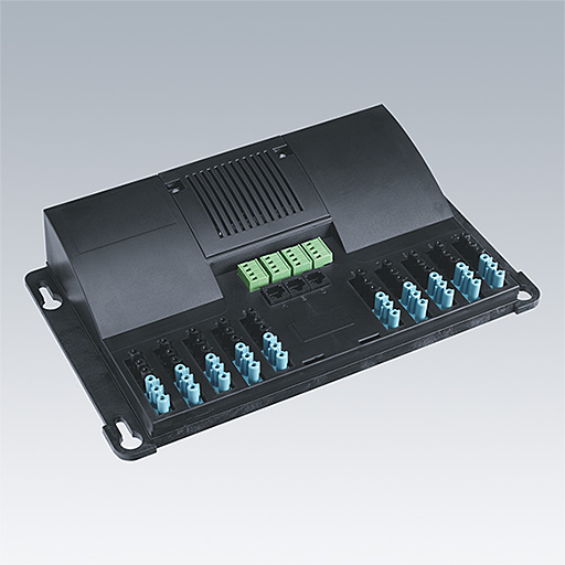 The DUC10 controls up to 10 luminaires. The unit is a 3 channel device, channel A has 4 luminaire outputs, channel B has 2 luminaire outputs and channel C has 4 luminaire outputs. There are corresponding DALI inputs on each channel for presence detectors (RJ45) and SELV switch inputs via pluggable connectors. Additional pluggable connections allow the testing of emergency fittings and connections for corridor hold. The DUC10 can be configured to work in various combinations.