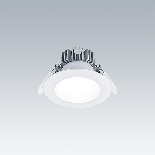 A low height, recessed LED downlight. Suitable for ceiling cut-outs Ø95-125 mm for easy refurbishments or fast initial installations. Remote, pluggable, Fixed output LED driver. Loop in - loop out possible. Body: Die-cast aluminium for thermal management. Diffuser: polycarbonate, smooth reflector in finish with wide beam. Reflector and trim: high quality, highly reflective polycarbonate. Class II electrical, IP20. Spring clips suitable for ceiling thicknesses from 1 to 25 mm. Complete with 4000K LED