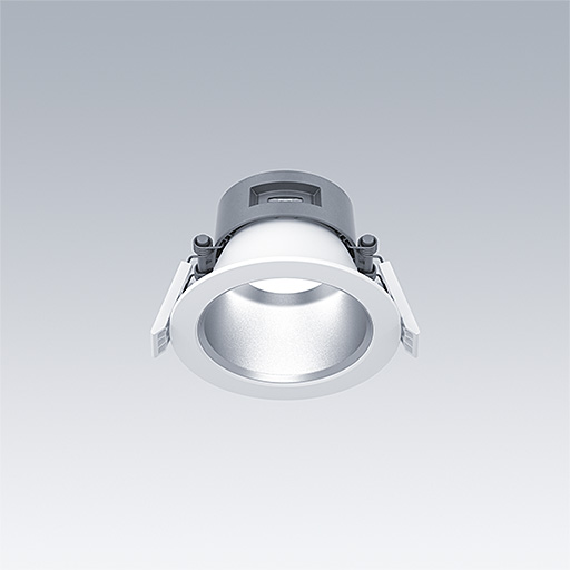 A highly efficient and sustainable LED downlight with low height. Suitable for mounting in ceiling thicknesses of 1 to 40 mm and Ø100mm cut-out with spring clips. Remote, pluggable, DALI-2 dimmable LED driver with DC functionality, adjustable 1-100 %, emergency power level preset to 15%, NFC configurable, SwitchDIM compatible.Loop in - loop out possible. Body: Die-cast aluminium for highly efficient thermal management with recycling content >90%. Diffuser: polycarbonate. Reflector and trim: polycarbonate smooth reflector in satinbrite finish with wide beam. Class II electrical, IP54_IP20. Complete with 4000K LED
