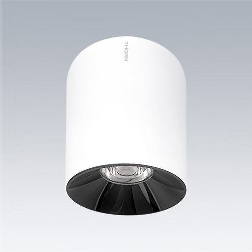 Highly efficient integrated LED surface-mounted downlight with lens and anti-glare reflector provides harmonious light. A surface mounted LED luminaire. DALI dimmable Class I electrical, IP20, Impact strength: IK06. Body: aluminium, white (RAL9003). Can be suspended by using wire suspension and rope suspension accessory kits (to be ordered separately). Colour rendering Ra > 80, colour temperature 4000 K.