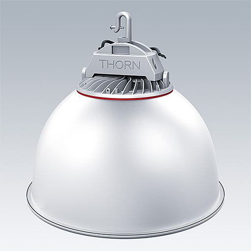 A pendant mounted circular LED high bay luminaire with Electronic, fixed output control gear. Heat sink: Die-cast aluminium. Reflector: aluminium alloy. PC lens also offer a comfortable lighting effect. Surge protection: 4kV. Complete with 4000K LED.