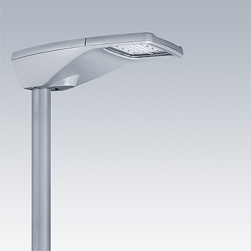 A small size LED road lighting lantern with 36 LEDs driven at 700mA with Pedestrian Crossing optic. LED driver Programmable. Class II electrical, IP66, IK08. Housing: Die-cast aluminium (EN AC-44300), powder coated textured light grey. Enclosure: tempered flat glass. Screws: stainless steel, Ecolubric® treated. Post top (Ø60/76mm, tilted 0°/5°/10°) or lateral (Ø34/42/49/60mm, tilted 0°/-5°/-10°/-15°) mounting. For lateral mounting to Ø34/42mm spigots an adaptor (59005840 R2L2 MA34/42 NPA) should be ordered separately. Complete with 4000K LED.