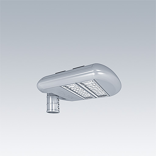 Pole mounted LED streetlight. Body: die-cast aluminium. Diffuser: polycarbonate. Special lens suitable for street lighting applications. 220VAC, 50/60Hz. 10kV surge protection, IP66, IK08, Class I electrical. Complete with 4000K LED