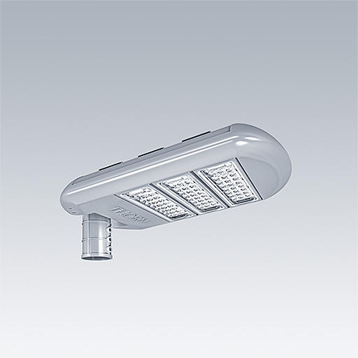 Pole mounted LED streetlight. Body: die-cast aluminium. Diffuser: polycarbonate. Special lens suitable for street lighting applications. 220VAC, 50/60Hz. 10kV surge protection, IP66, IK08, Class I electrical. Complete with 4000K LED